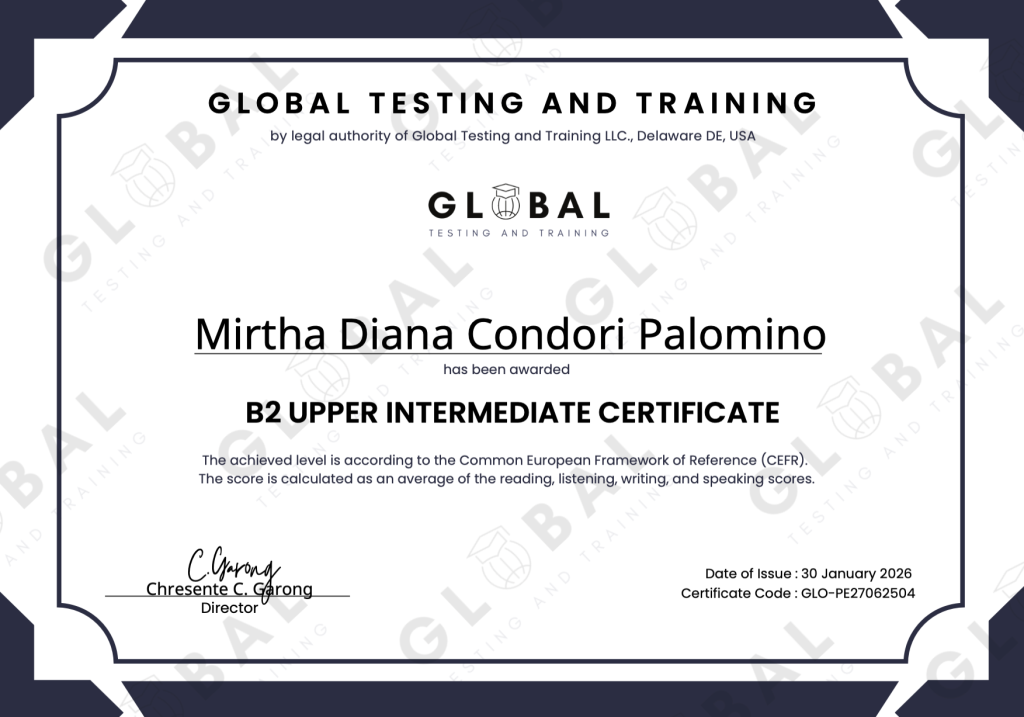 We hereby confirm that the certificate reflected below has been verified as authentic and was duly issued by Global Testing and Training.