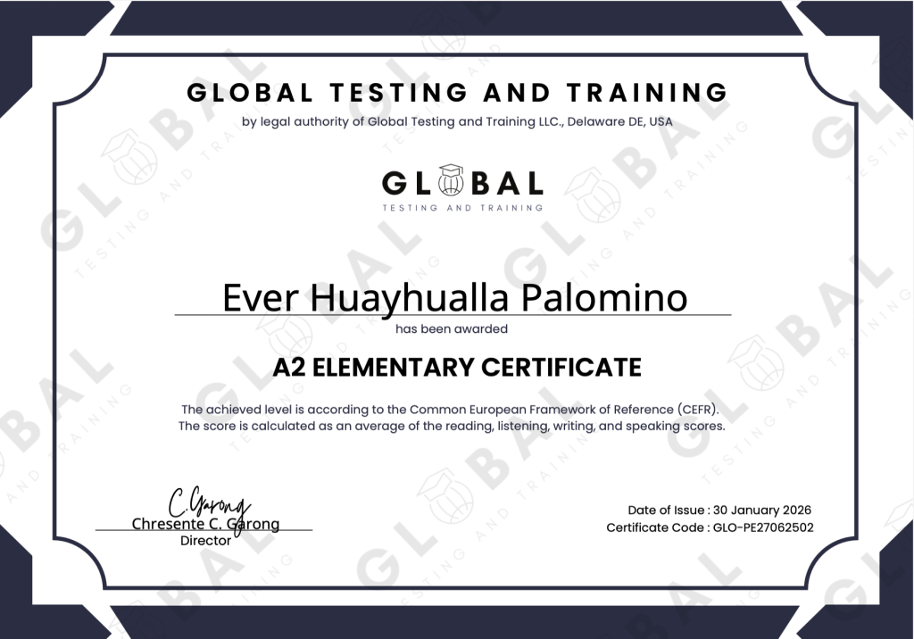 We hereby confirm that the certificate reflected below has been verified as authentic and was duly issued by Global Testing and Training.